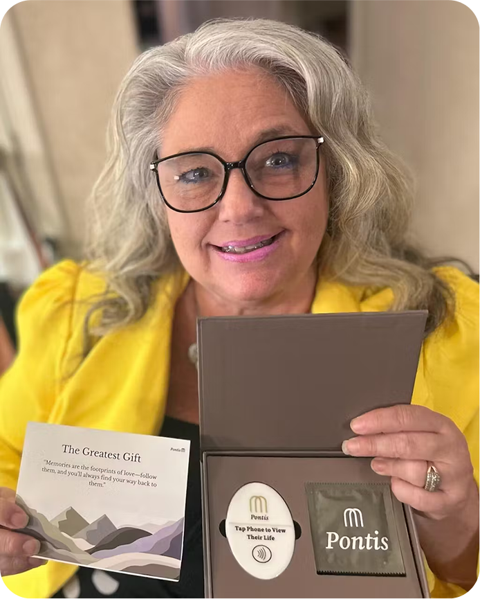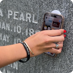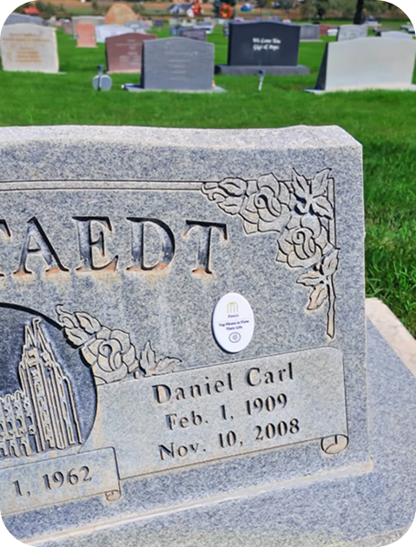 Anyone can tap their smartphone on the medallion—no app required—to instantly view the memorial online. The responsive page lets visitors scroll the life story, watch videos, leave messages, or share the tribute link with loved ones